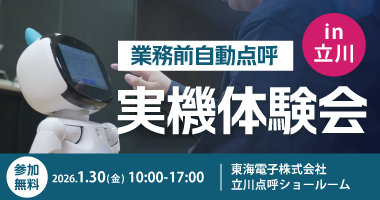 予想以上に多くの再開催リクエストをいただいた10月開催のウェビナーを特別に再配信! 本セミナーでは自動点呼機器「e点呼セルフTypeロボケビー」の運用イメージ、主要機能、導入メリット、他機種との比較ポイントをコンパクトにわかりやすく解説します。 すでに機器選定が進んでいる企業様でも、「実際の運用にフィットするか」「他の機器と何が違うのか」 を短時間で整理できます。