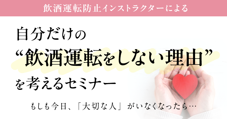 大切な人の「ただいま」が永遠に聞こえなくなる日。 自らの手で、かけがえのないものを失ってしまう瞬間。 飲酒運転は、私たちの大切な人や宝物を一瞬で奪います。 「自分は大丈夫」という思い込みを捨て、 罰則を恐れるだけでなく本当に大切なものを守るために。 今、私たちに何ができるのかを共に考え、行動に移すためのセミナーです。